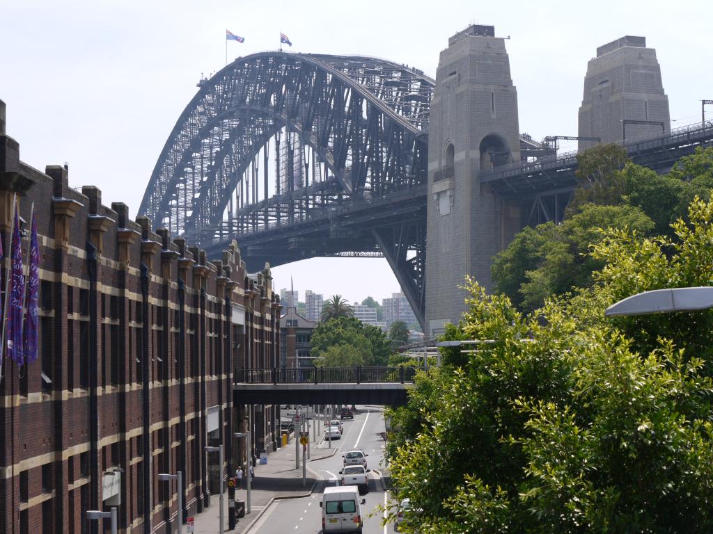 Checked out The Rock. It used to be a dangerous part of town a hundred years ago but its old brick warehouses got remodeled into expensive restaurants, cafes, and galleries. Some of its alleys are more modern redevelopments that pay less attention to the old style, but it’s still a very nice neighborhood in a very prominent location at the Harbor Bridge. Sydney loves its waterfront and puts promenades, piers, and parks there; unlike, say, Paris or Seattle where they like to close off the waterfront for freeways.